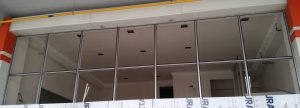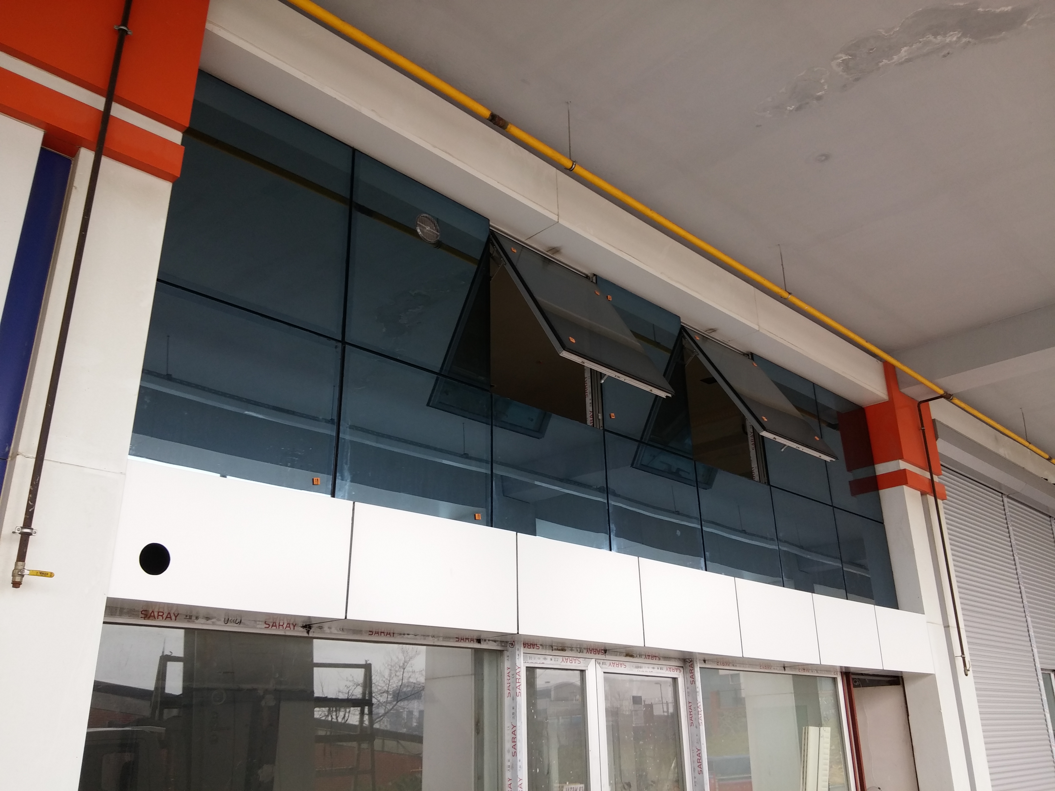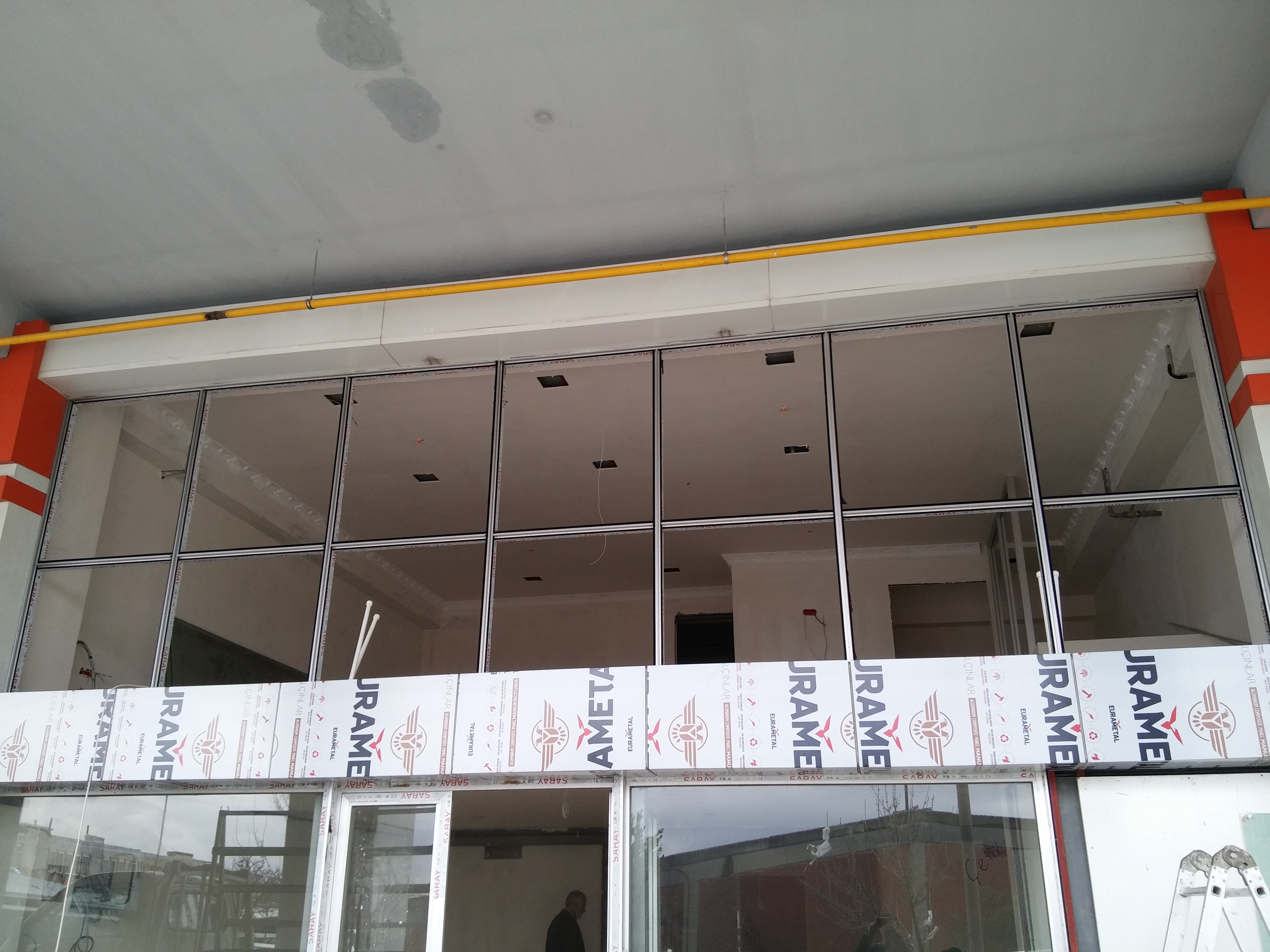 Dükkan doğramaları C60 serisi alüminyum doğraması olarak uygulanmıştır.Daha sonra dükkanın üsttarafına silikon cephe yapılarak dükkan ön cephesi görsel olarak zenginleştirilmiştir.